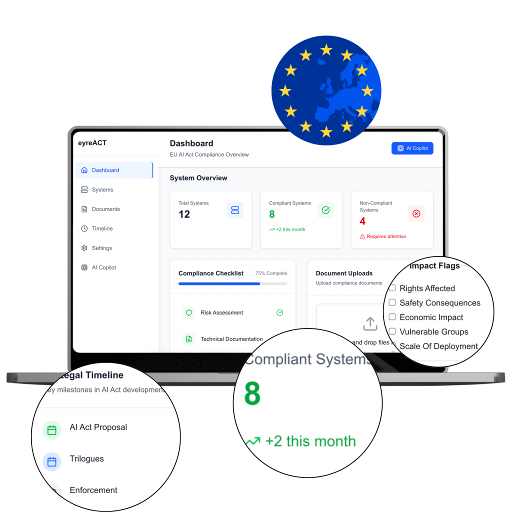 eyreACT helps companies prove their AI is safe and legal—without hiring expensive lawyers. Like a safety inspection, but for AI systems.